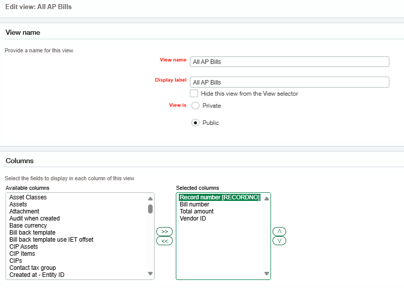 *Ensure that the “All AP Bills” view is listed first and the “FA All AP Bills” view is second, if this is not the case, please reorder these views.
