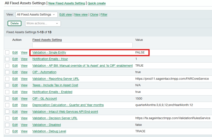 For the Validation Rules to run correctly in Fixed Assets, the API Permissions need to be set up. Here are the steps to set up the API Permissions based on your Intacct Instance (i.e. Single Entity/Multi-Entity).