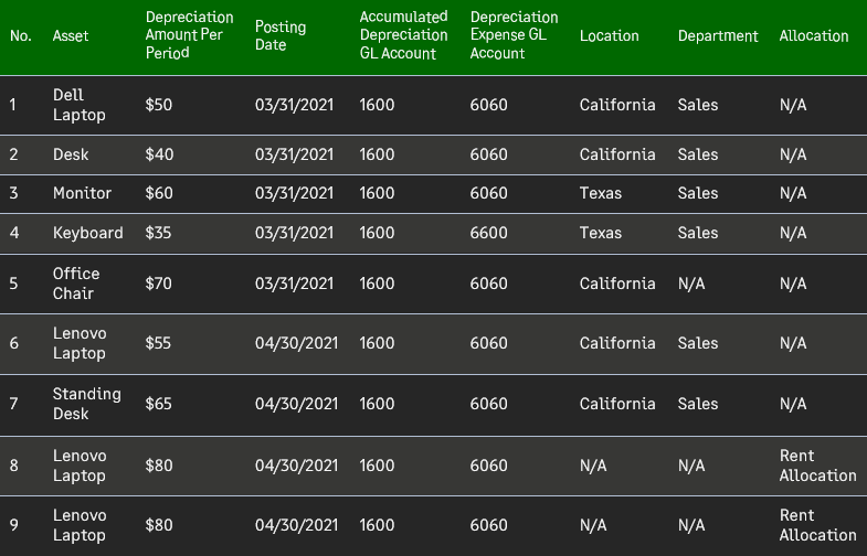 *If an allocation rule is assigned to an asset, the application will automatically split the allocation entry in the GL batch for depreciation expenses booked in the GL.