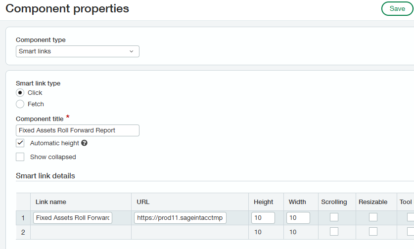 Component title and Link Name: “Fixed Assets Roll Forward Report”
