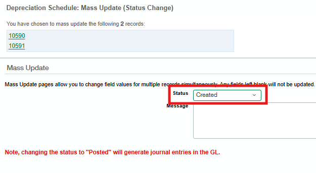 Check the box(es) in the left-side column to select the depreciation schedule
