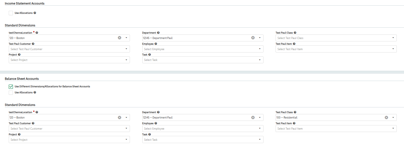 In the Balance Sheet Accounts section, select the box that says “Use Different Dimensions/Allocations for Balance Sheet Accounts.”