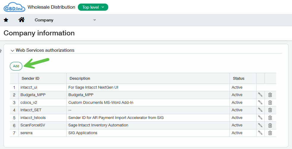 Enter sererra for the Sender ID, enter Sage Intacct SIG Applications and select Save.